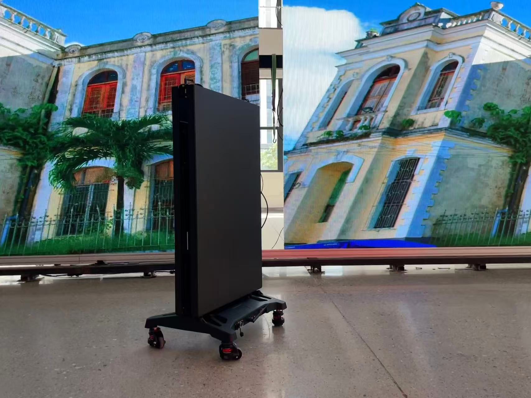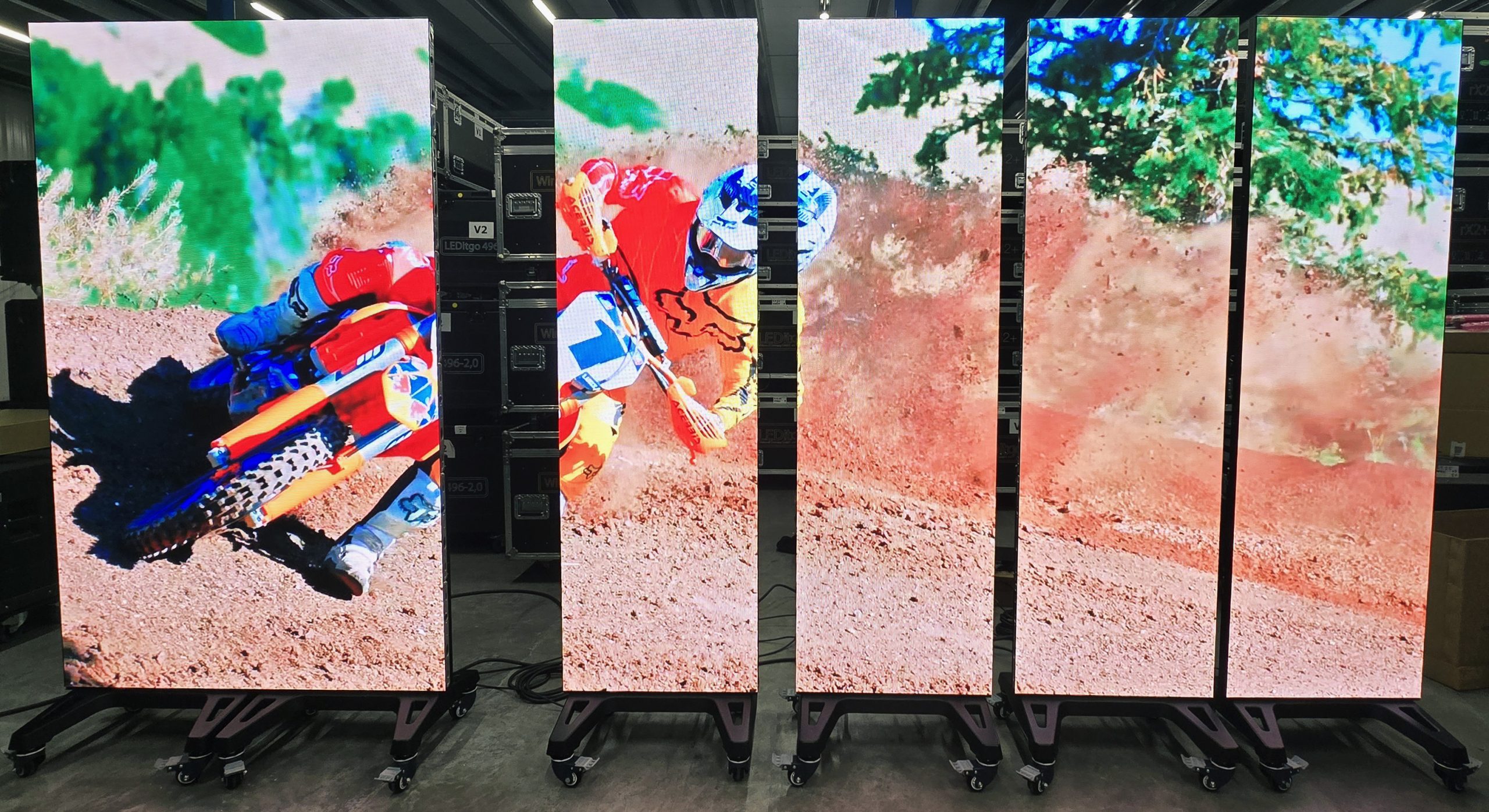 per WLAN oder über HDMI eingespielt werden. Bei Bedarf lässt sich ein separater LED-Controller anschließen, um eine spaltfreie LED-Wand zu gestalten. Mit einer Displaygröße von 0,6 × 2,03 Metern bietet es die perfekte Kombination aus Größe, Mobilität und beeindruckender Bildqualität.